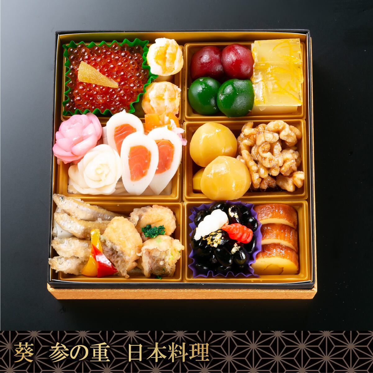 ※ 仕入れ状況により料理内容・重箱の材質や包装が掲載のものと異なる場合がございます。予めご了承ください。